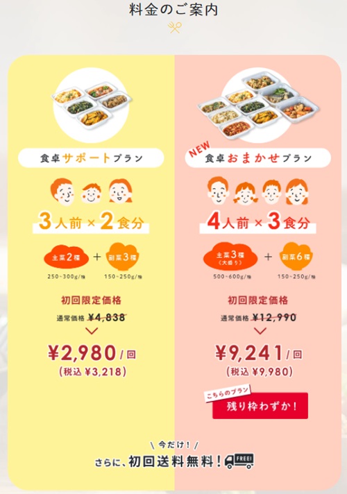 毎週のメニューは自分で選べないため、苦手な食材が含まれることもあります。